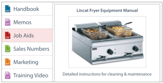• Quick and easy access to job aids, recipes, instructions, manuals